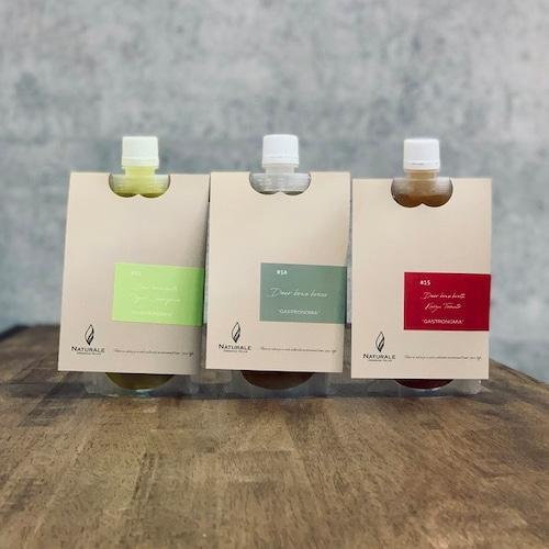 全て見る テキストをコピー 内容量:各種1袋200g入(2食分)×1(合計3袋6食分)     ※1食分100gとして 賞味期限:冷蔵7日間 (冷凍保存可能。一か月を目安にし、冷蔵解凍後はなるべく早くお召し上がりください。) <冷蔵便配送> 「古代から伝わるスーパースープ」 ~腸内環境を整える~ ~皮膚の健康を維持する~ ~関節を保護する~ ~体の毒素を排出する~ 飲み方はいたってシンプル。  おすすめは軽く温め毎朝一杯、ゆっくりとボーンブロスを飲むことです。コーヒーを飲んでいる方は、コーヒーの代わりにどうでしょうか。 1日100ccを目安に毎日飲むことにより腸内環境が改善され、各種疾患の改善や疲労回復、便秘の改善、アンチエイジングなど様々な効果が期待できます。 その他香味野菜等に関してももちろん農薬を使っていないものを積極的に使用しておりますのでご安心ください。 鹿ボーンブロス 原材料:天然鹿骨、玉ねぎ、人参、セロリ、柿酢、生姜、にんにく、タイム、ローズマリー、食塩、ローリエ (アレルギー成分:なし) 鹿ボーンブロス+海津トマト&ジンジャー 原材料:天然鹿骨、トマト、玉ねぎ、人参、セロリ、柿酢、生姜、にんにく、タイム、ローズマリー、食塩、ローリエ、コリアンダー (アレルギー成分:なし) 鹿ボーンブロス+ココナッツ&大垣レモングラス 原材料:天然鹿骨、玉ねぎ、人参、セロリ、ココナッツミルク、柿酢、レモングラス、生姜、にんにく、タイム、ローズマリー、食塩、ターメリック、ローリエ、コリアンダー (アレルギー成分:なし)