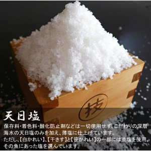 深層海水の天日塩だけで薄塩に仕上げた無添加一夜干で、保存料・着色料・酸化防止剤等は使用しておりません。
