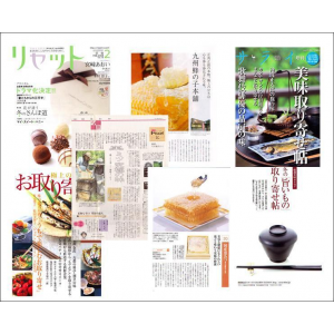 マガジンハウス「Hanako」、グルメ情報誌ISOLA別冊「珠玉の一口」、リセット出版「福岡モン」、サライ「美味取り寄せ帖」、極上の味お取り寄せ 他多数