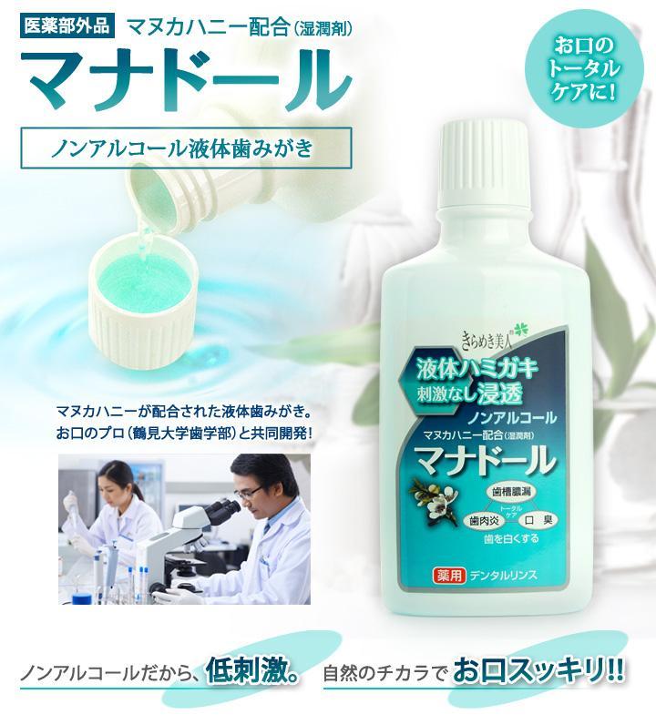 グリチルリチン酸ジカリウム、キシリット、ハチミツ[マヌカハニー]、ポリオキシエチレン硬化ヒマシ油、香料(ペパーミント、レモン、ティーツリー)、精製水、パラオキシ安息香酸メチル、法定色素