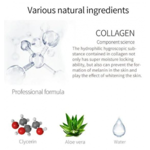 成分:水、グリセリン、BG、DPG、フェノキシエタノール、クロルフェネシン、アラントイン、カルボマー、パンテノール、PEG-60水添ヒマシ油、TEA、加水分解コラーゲン、EDTA-2Na、アロエベラ葉エキス、ボスウェリアセラタエキス、香料、ヒアルロン酸Na、ポリアクリル酸Na
