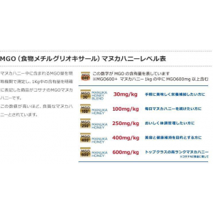 ※MGOマヌカハニーは自然の食品ですので、採れた年や地域で味や見た目(色合い)などが変わることがあります。