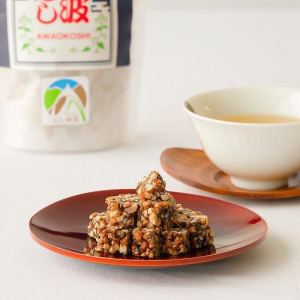 この貴重な「そば米」を使って作られたのがこの「阿波おこし」であります。水あめや黒糖でそば米を固めたお菓子で、シンプルですがとても食べやすく、ザクザクとした食感が癖になる一品です。