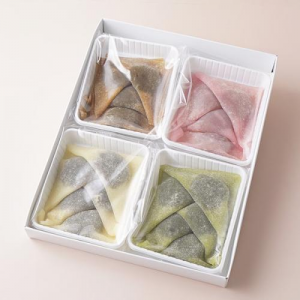 定番であるニッキと抹茶の2種に加え、いちご餡入りとチョコ餡入りの2種、計4種もの生八ツ橋を詰合せ、京銘菓の名に恥じない特別感を演出しました。