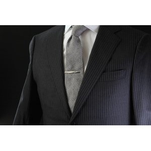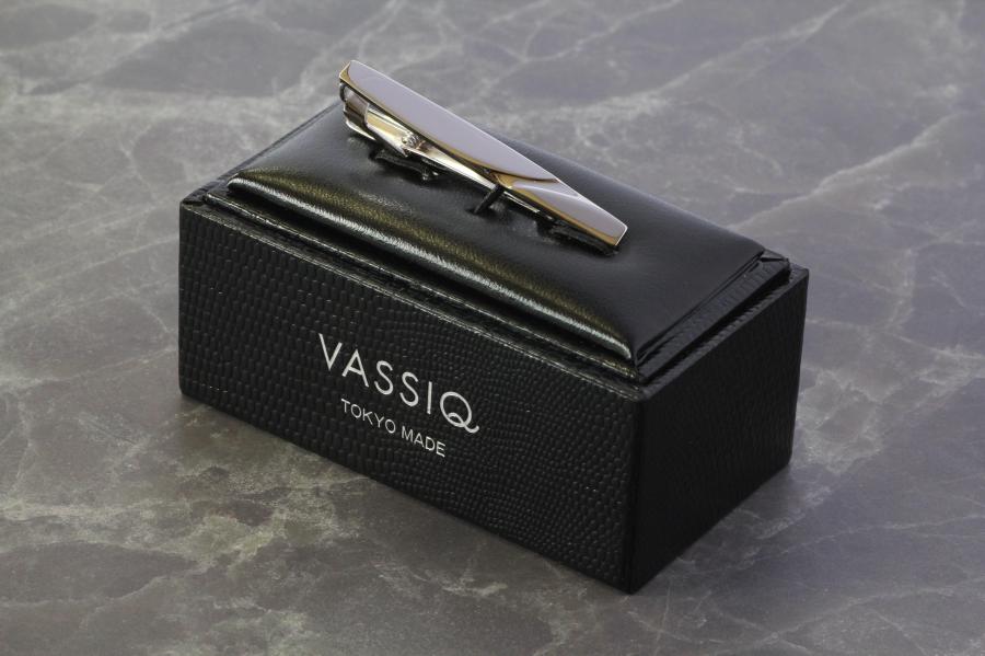 センターが幅広の曲線ラインの外形の本体に、アクセントとして斜めに凹のラインが流線形に入るエレガントなタイバー。 人気の商品です。