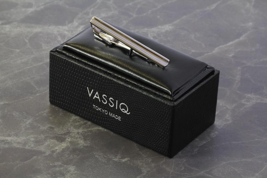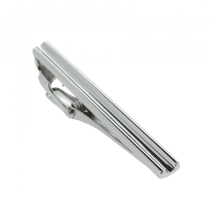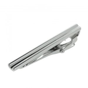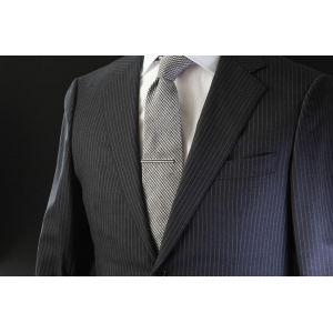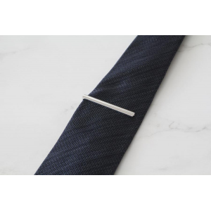 先端に向けて幅広となるアウトラインの中央を大胆にえぐったデザインです。 サイズはやや短めですが、その分個性の強い存在感のあるタイバーです。