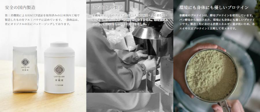 拿鐵庵のすべてのプロテインは、人工甘味料・人工着色料・保存料・酸化防止剤を一切不使用!