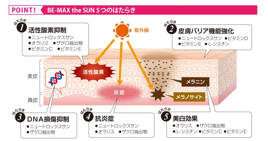 BE-MAX the SUNは、きらめく太陽のように自らを輝かせ、透明感のある華やかさを目指す女性に続けてほしい新習慣サプリメントです。