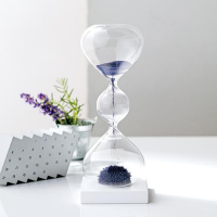 台にマグネットが付いて、紫色の砂鉄が下にくっつく様子が面白い1分計の砂時計。砂鉄…