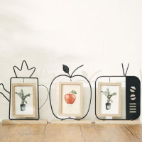リンゴ、テレビ、ジョーロをモチーフにした、ほっこりするデザインのアイアンフォトフ…