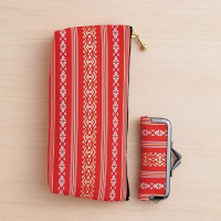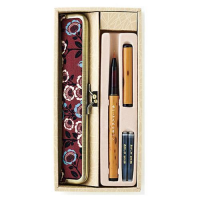 あかしや天然竹筆ペン 京帯地ペンケースセット 椿