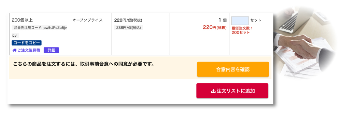 販売前提合意を必須に設定すると、バイヤーは合意するまで発注ができなくなります。
